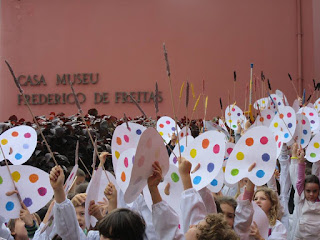 ... visitaram "As Crianças da Casa da Calçada" durante a manhã. Ouviram/viram a história/exposição sobre as vidas do Ragid, da Anne, do Takao, do Crispim e do gato Quimera. No ateliê ilustraram o conto num marcador de livros para brevemente oferecerem a alguém muito querido Emoji wink;)