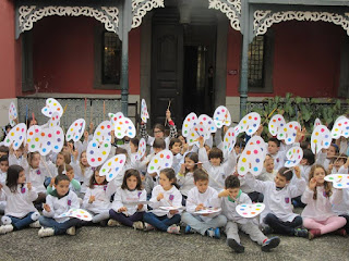 A visita temática orientada teve por base a exploração de parte da coleção de Pintura. Na componente de expressão plástica a criação de uma paleta/pincel como adereços de Carnaval, permitiram a manipulação e experimentação de diferentes materiais. Na paleta os alunos puderam usar as cores primárias e perceber como se obtêm as cores secundárias. Agora o Carnaval será ainda mais colorido :D